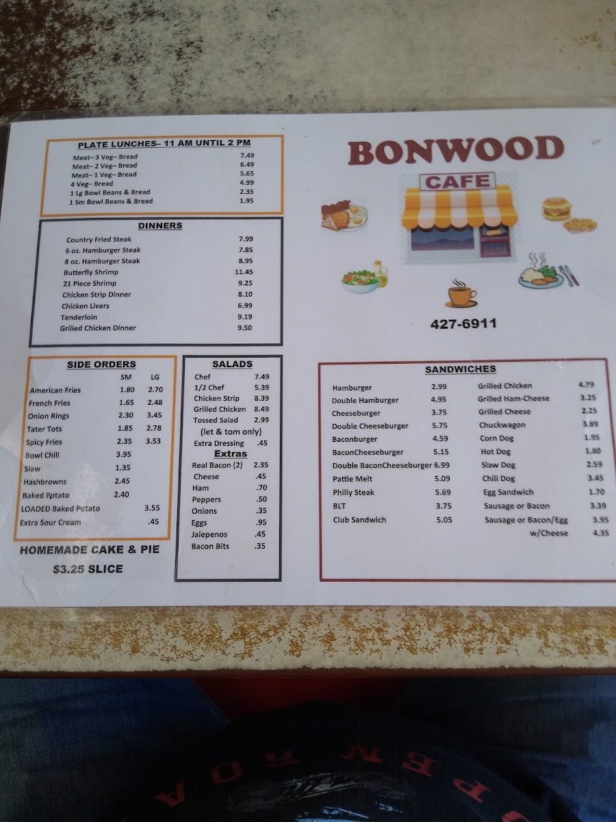 Bonwood Cafe Menu